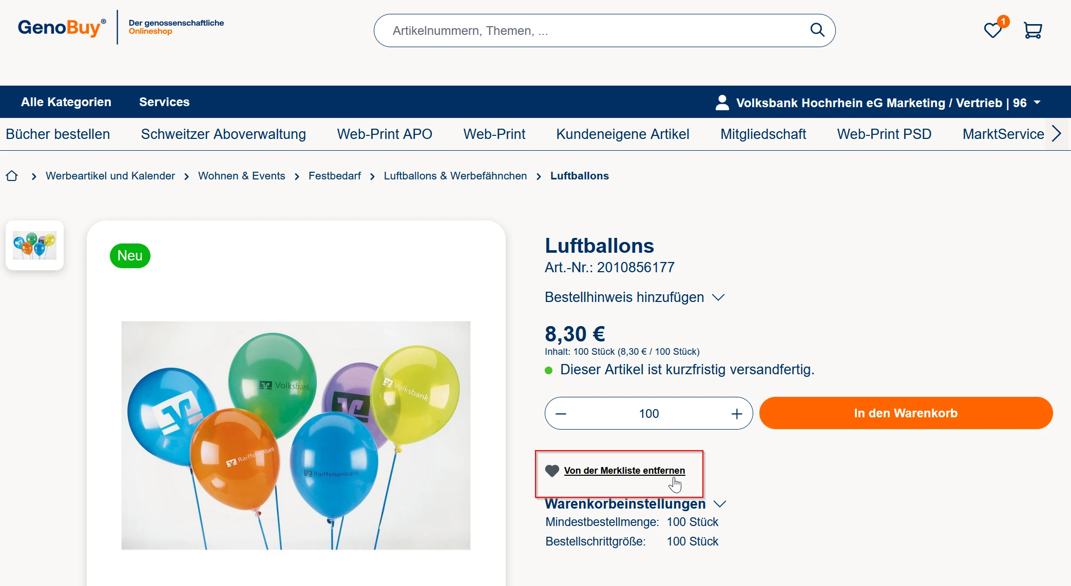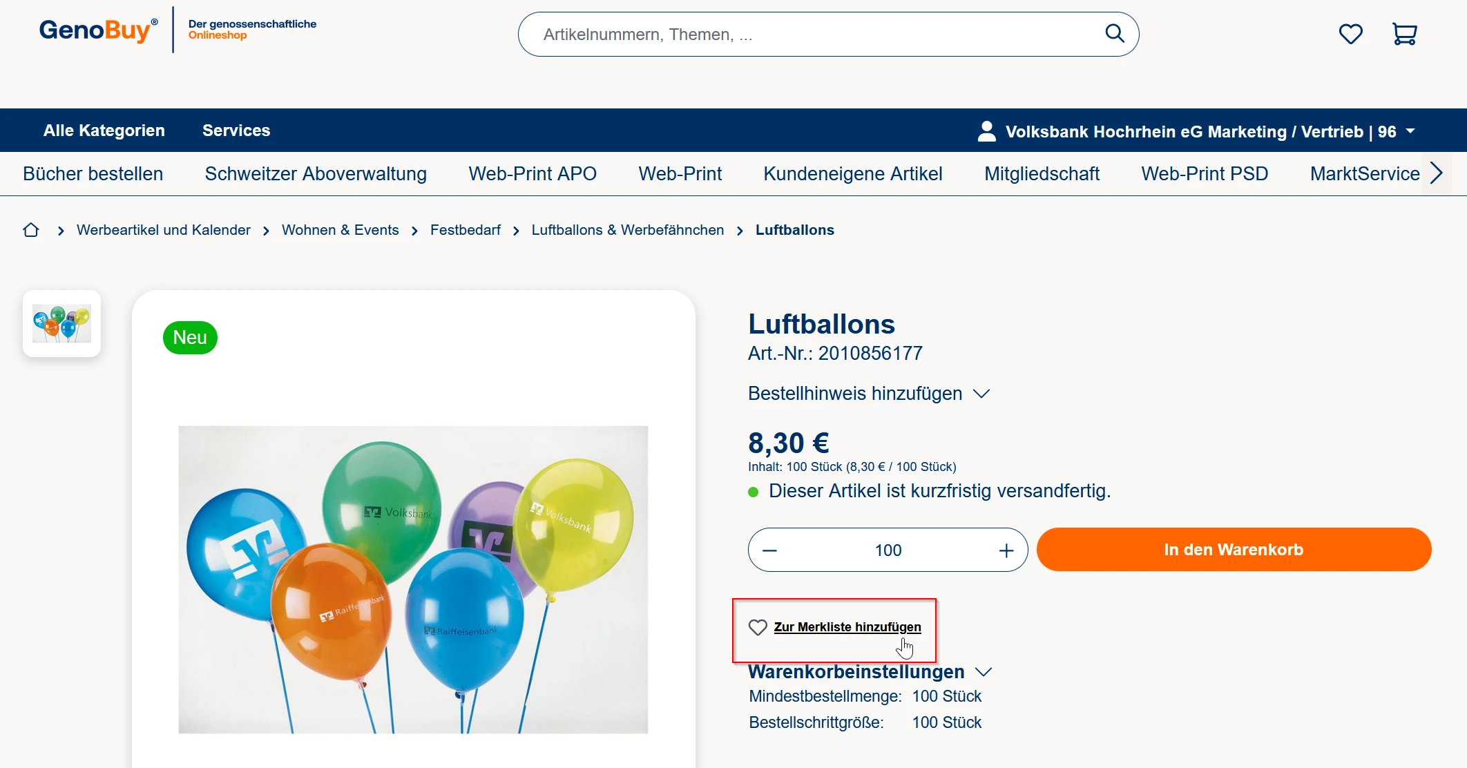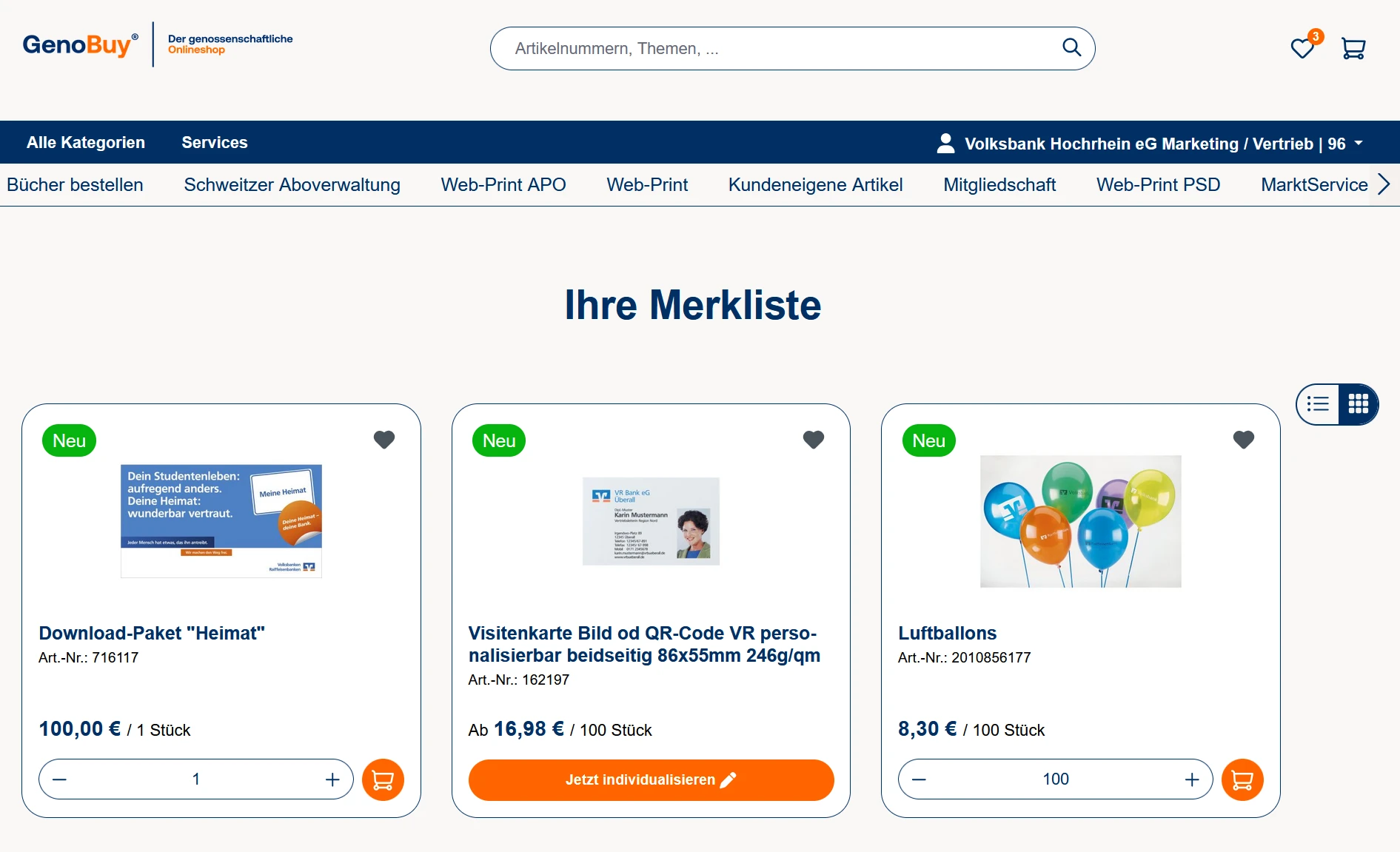Die Merkliste ist ein praktisches Werkzeug in GenoBuy, mit dem Sie Produkte zur späteren Betrachtung oder Wiederbestellung speichern können. Gerade bei regelmäßig benötigten Artikeln oder bei der Zusammenstellung größerer Bestellungen kann dies hilfreich sein. Sie ermöglicht es, Produkte mit wenigen Klicks zu verwalten und später unkompliziert zu bestellen.
