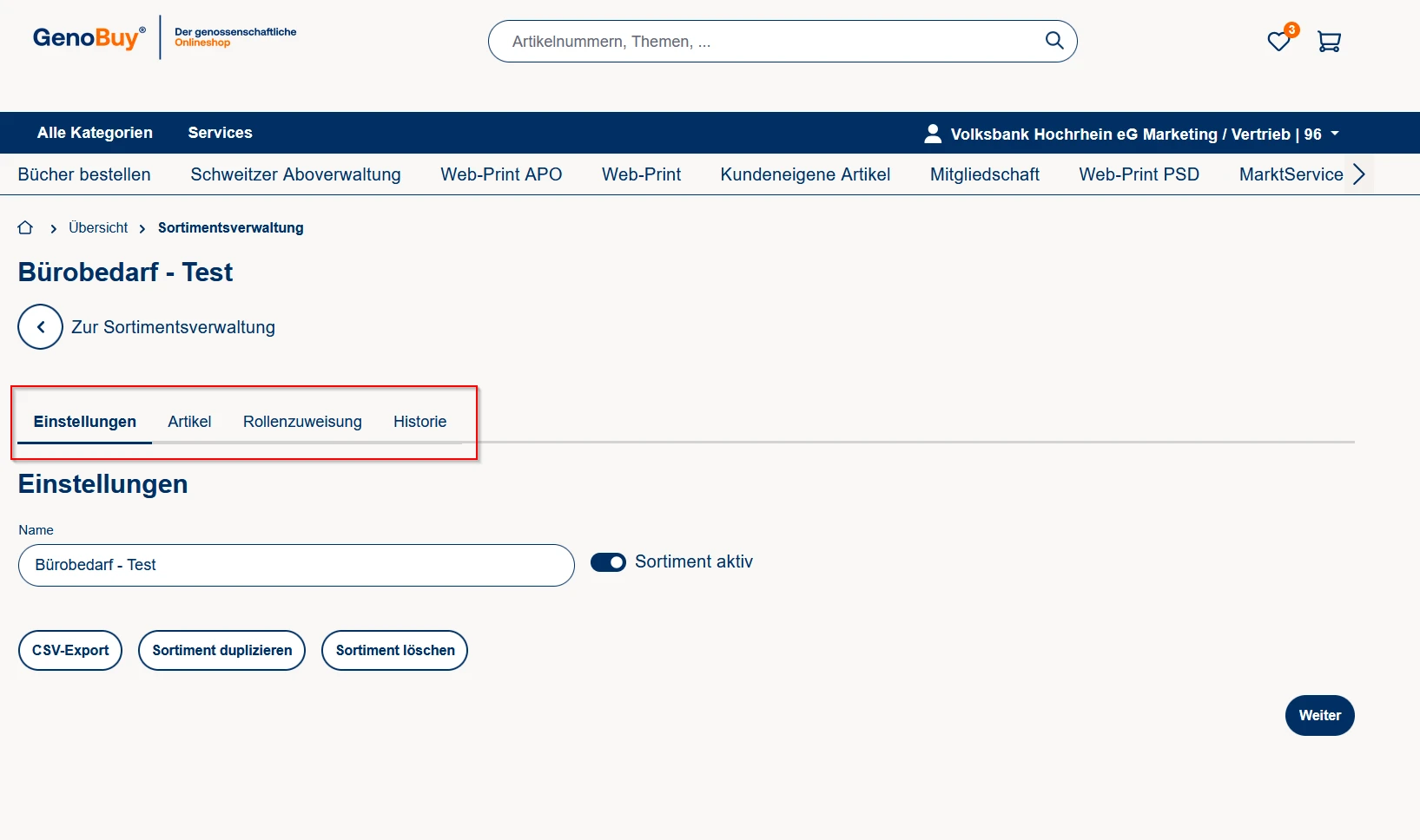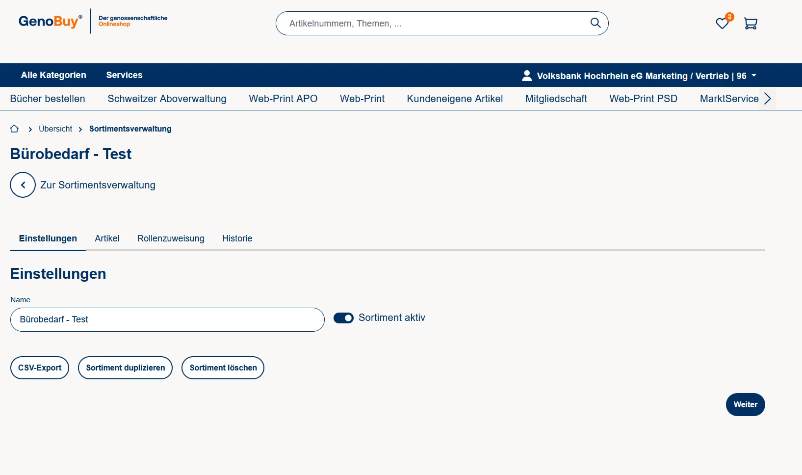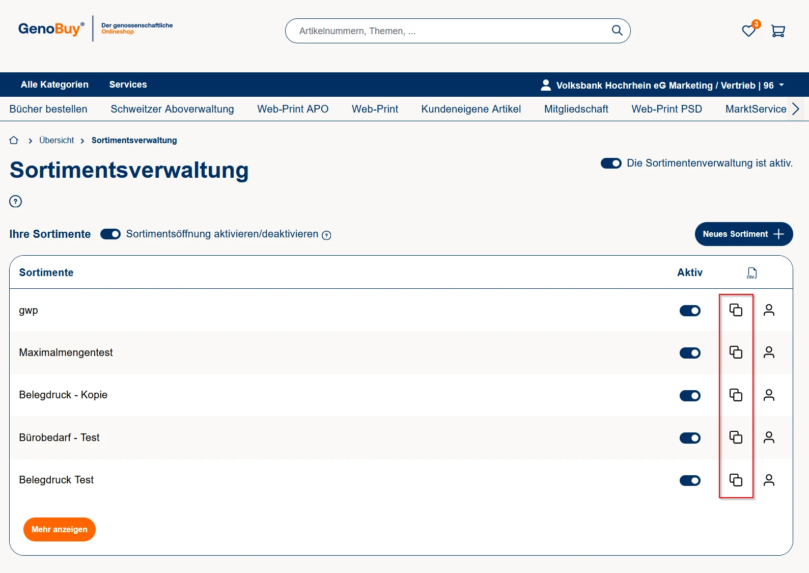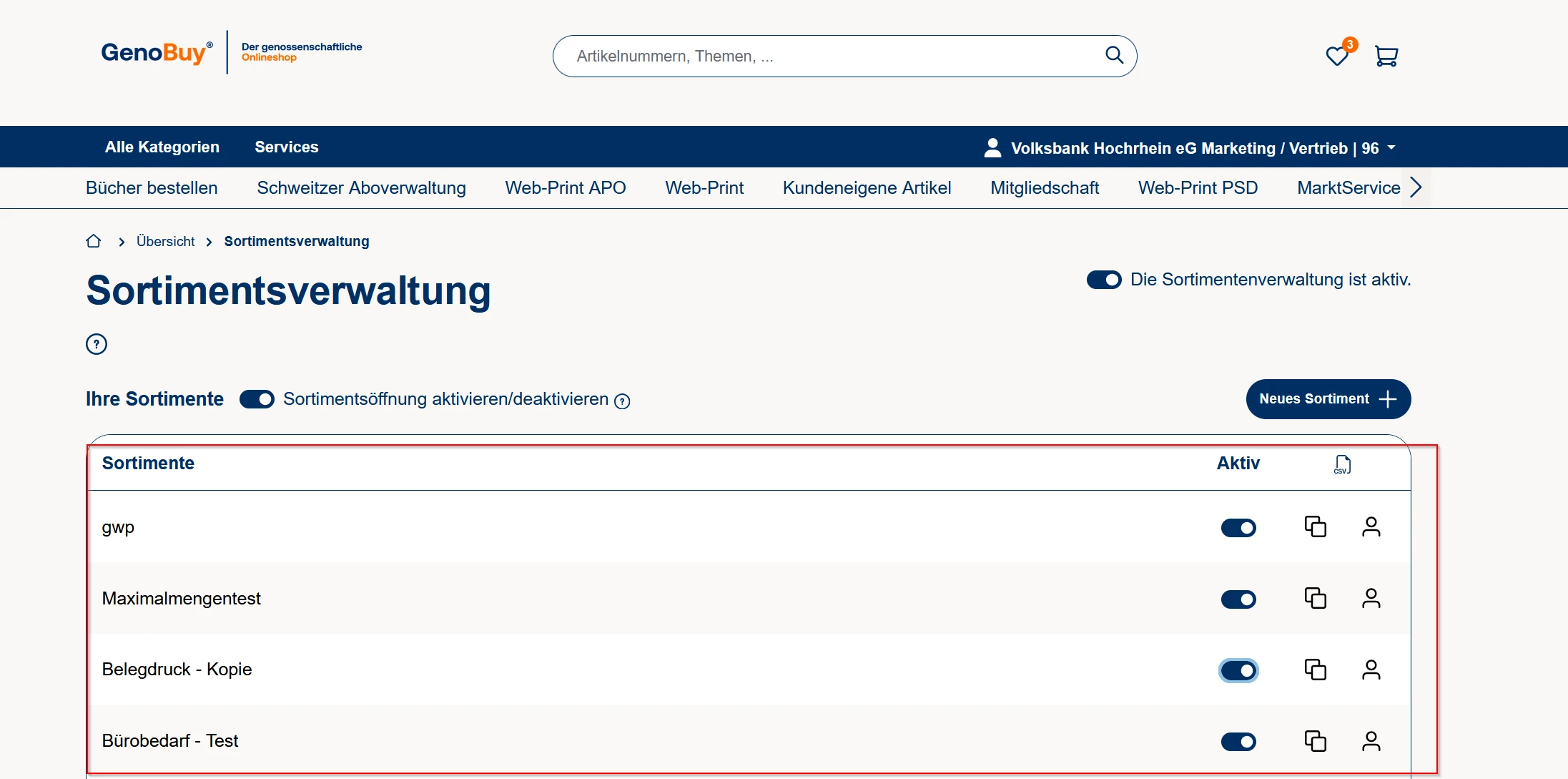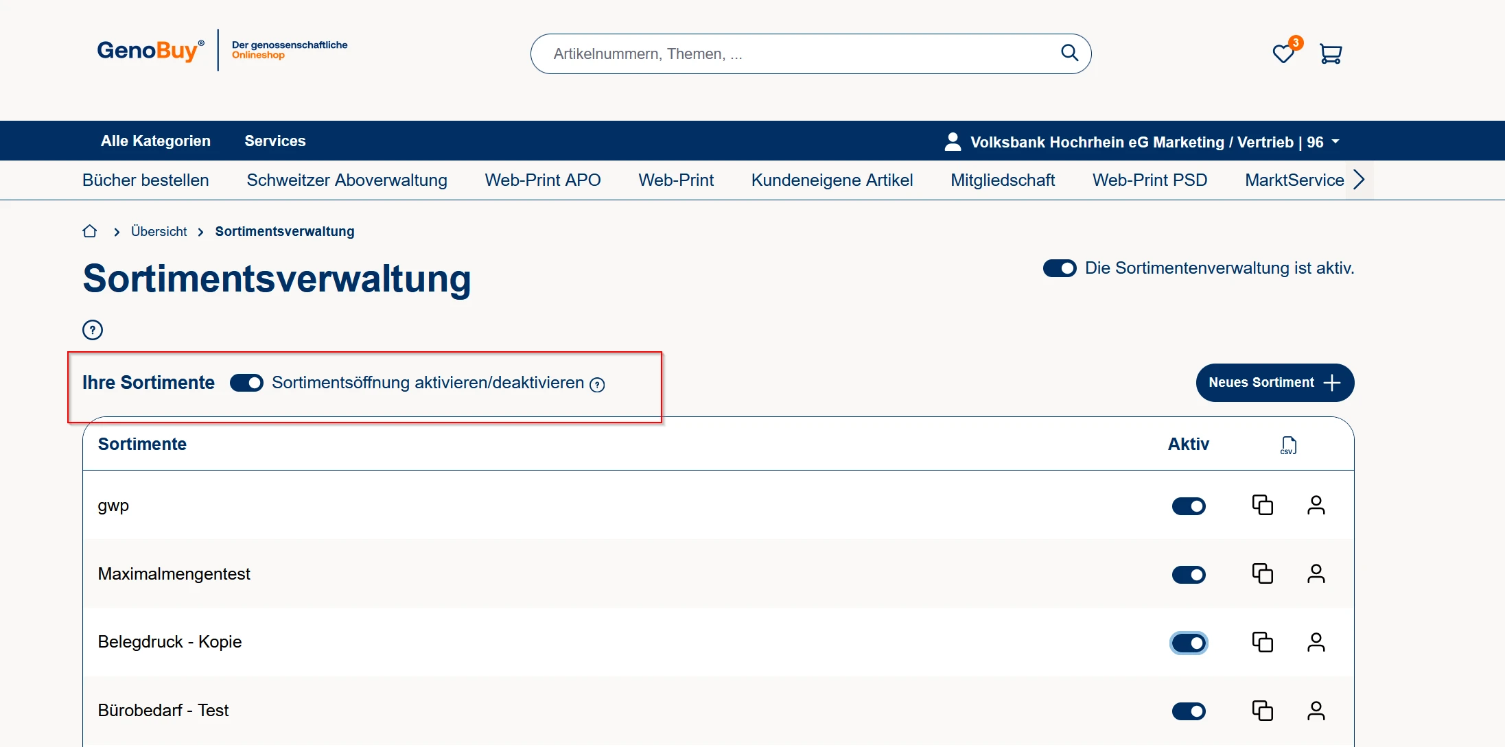 Mit der Sortimentsverwaltung in GenoBuy haben Sie die Möglichkeit, Ihre Sortimente konzernübergreifend zu verwalten und festzulegen, welche Rollen Zugriff auf bestimmte Sortimente haben, und diese bestellen dürfen.