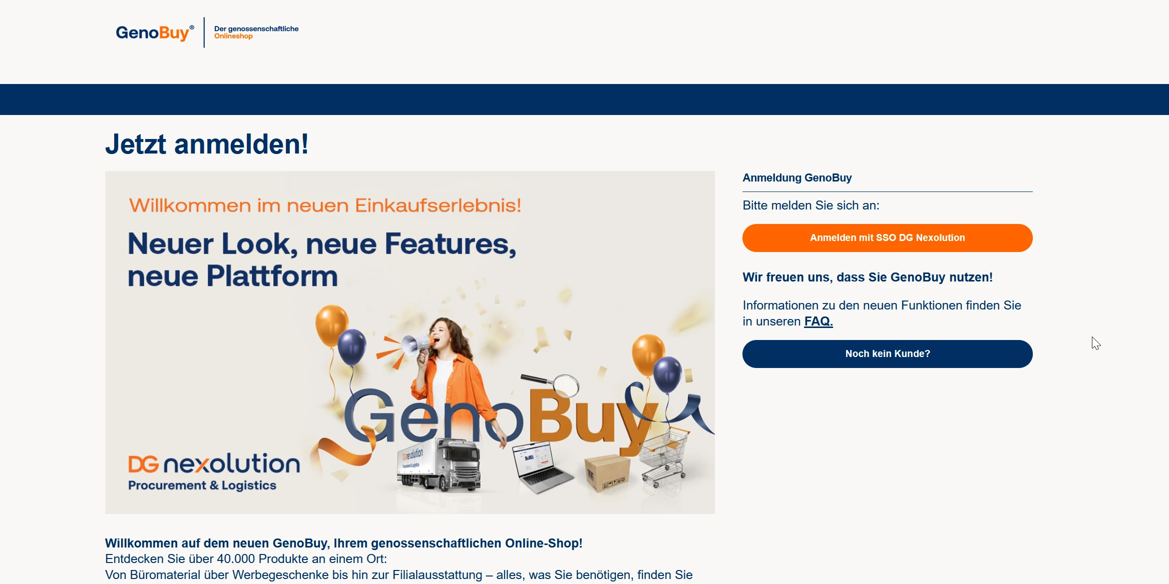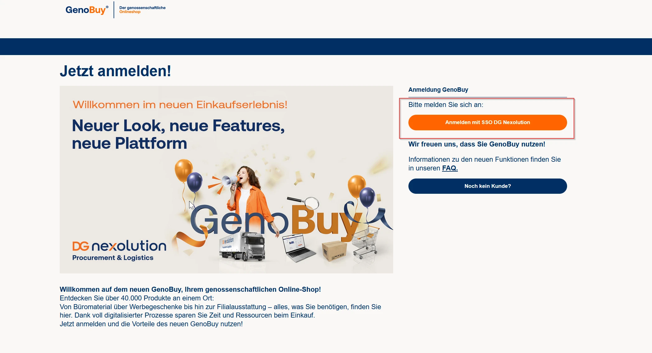 Über die Schaltfläche "Noch kein Kunde?" können Sie sich für GenoBuy freischalten lassen.
