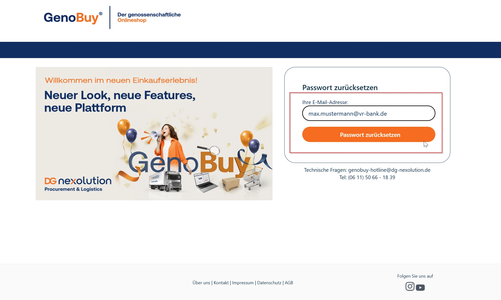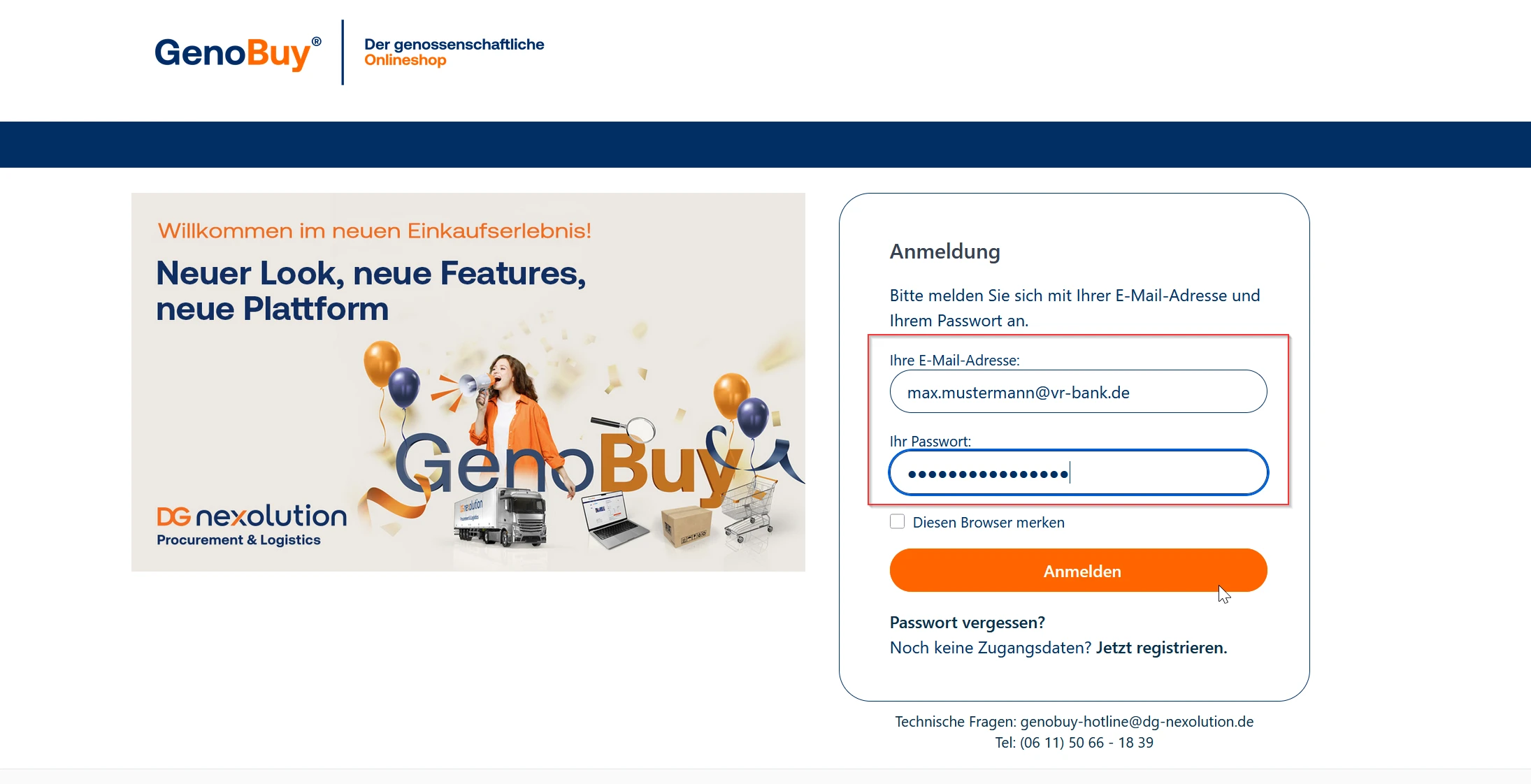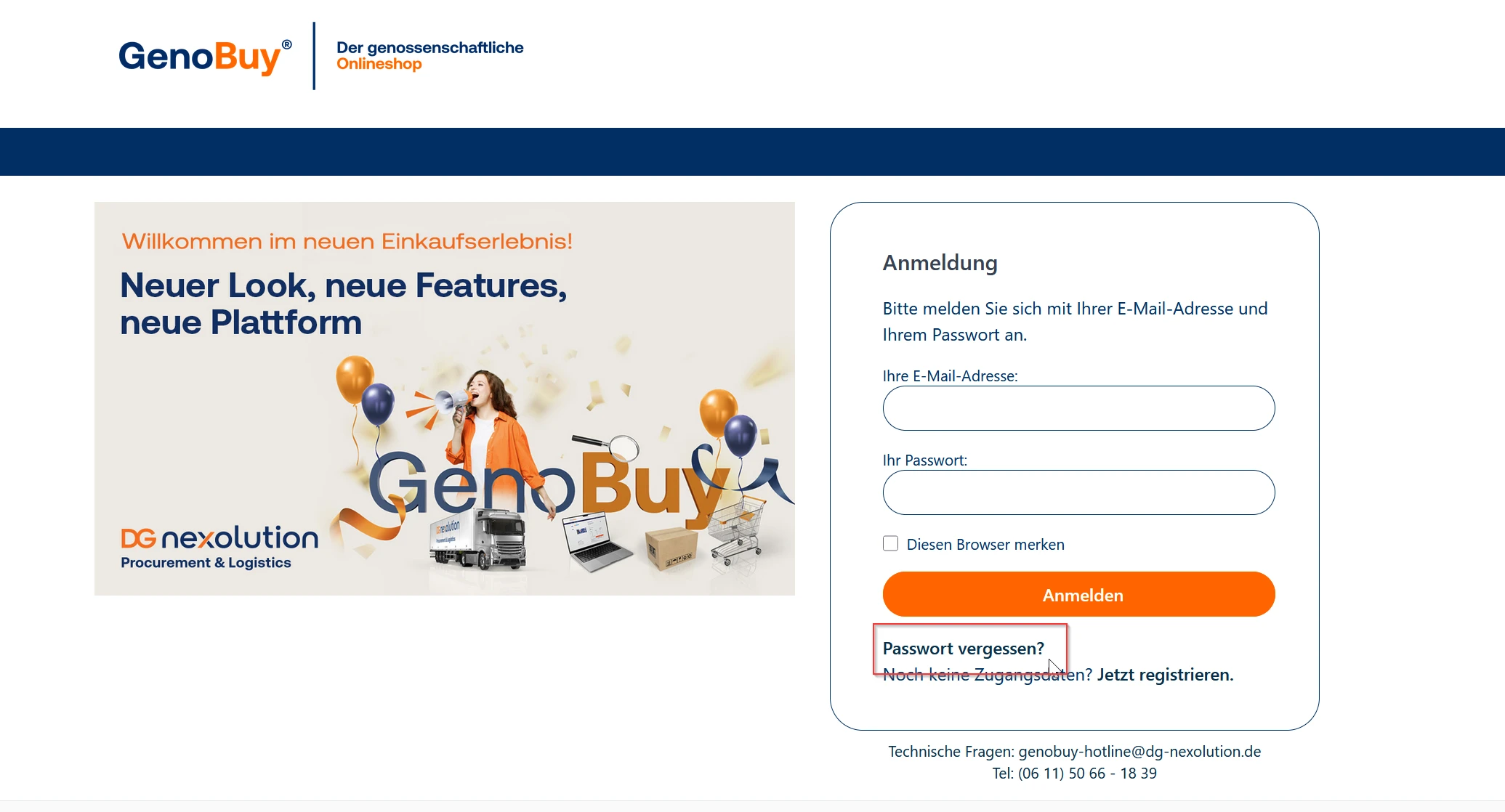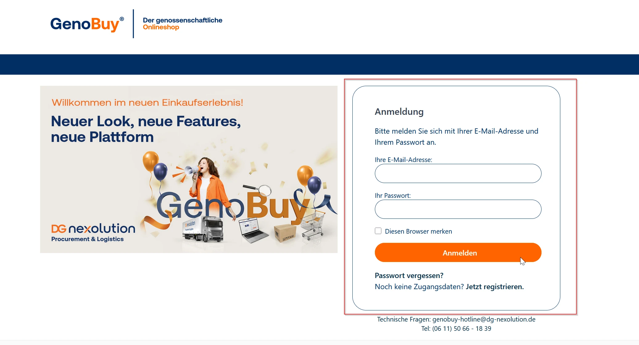 Voraussetzung für den Zugang ist jedoch ein entsprechendes Benutzerkonto im Shop, das mit derselben E-Mail-Adresse hinterlegt ist. Dieses Benutzerkonto wird durch Ihren internen GenoBuy-Administrator eingerichtet. Bitte wenden Sie sich zur Anlage Ihres Zugangs direkt an Ihren Bankadministrator.